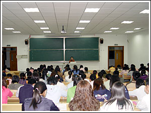 党校举办高级培训班,在我院还是首次,对象是被确定为发展对象的学生,培训内容是在初级班学习党的基本知识的基础上,重点讲授共产党宣言、十六大以来党的重大方针、政策和如何发挥学生党员的骨干带头作用等,由党委书记童学敏、副书记潘素芳担任主讲人。昨晚在1号楼209阶教举行了简短的开学典礼后,由潘素芳副书记担任第一讲《共产党宣言》。