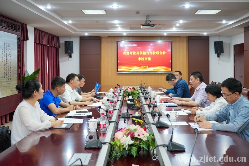 4月16日,开化县供销合作社联合社(以下称开化县供销社)党委书记、理事会主任何国一行来校交流,洽谈校地合作。校长陈德泉出席座谈会,学校办公室、资产后勤处、信息技术学院等部门负责人参加座谈。